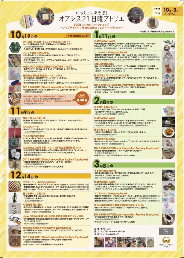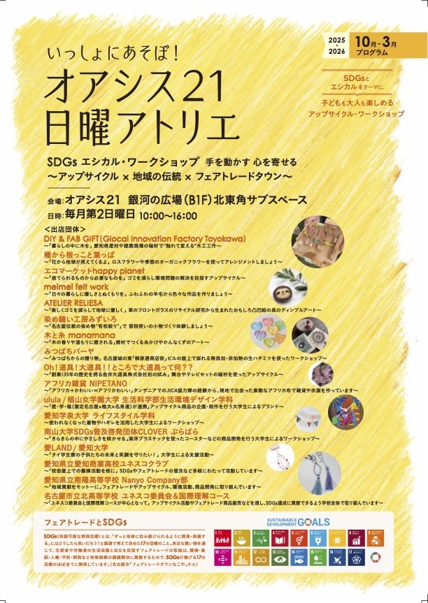 「オアシス21日曜アトリエ」 子どもも大人も いっしょにあそぼ! 〜手を動かす 心を寄せる〜エシカルSDGsワークショップ 「フェアトレード × アップサイクル × 地域の伝統産業 」