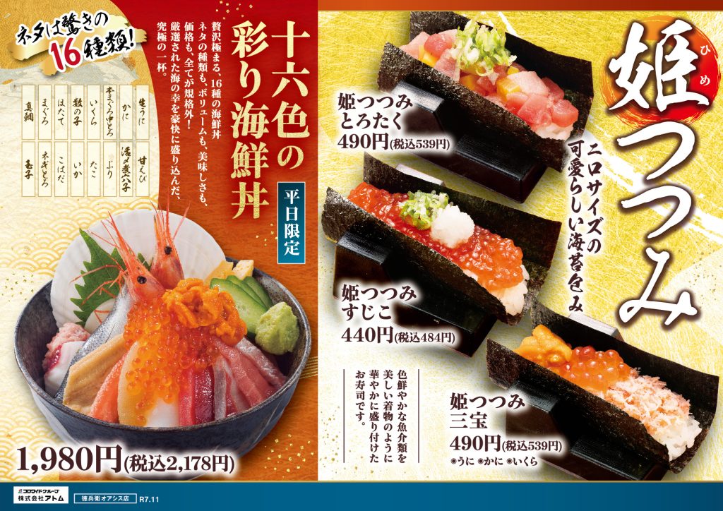 【にぎりの徳兵衛】『姫丼®』『姫つつみ』『十六色の彩り海鮮丼』