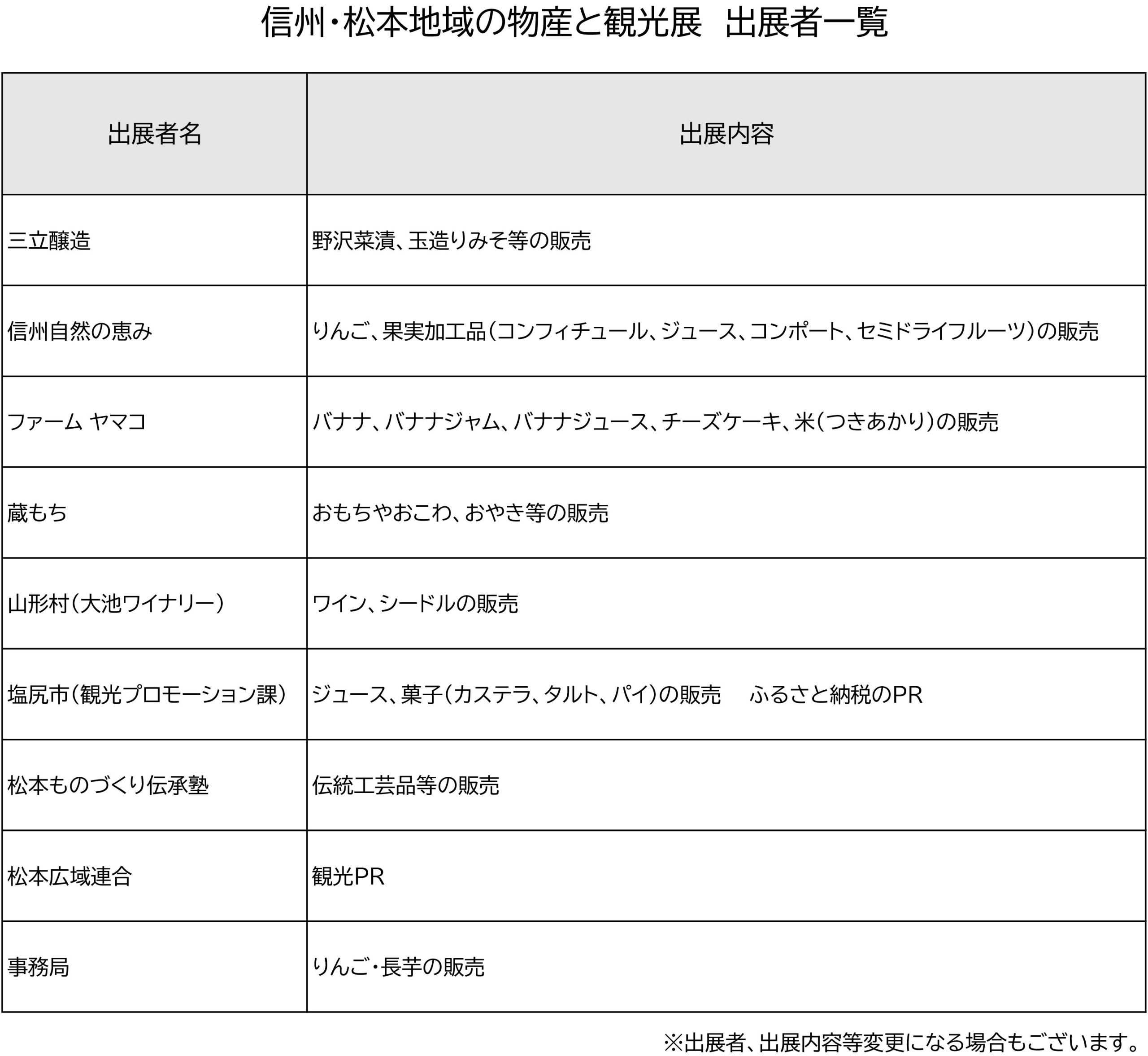 信州・松本地域の物産と観光展 | イベントスケジュール | オアシス21
